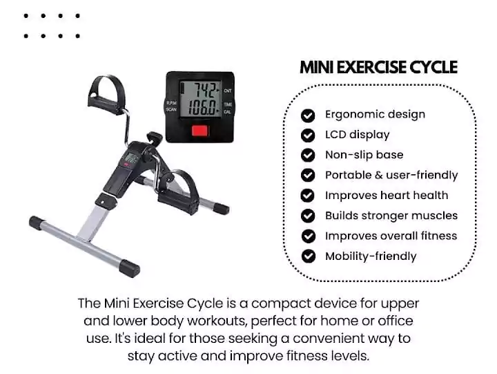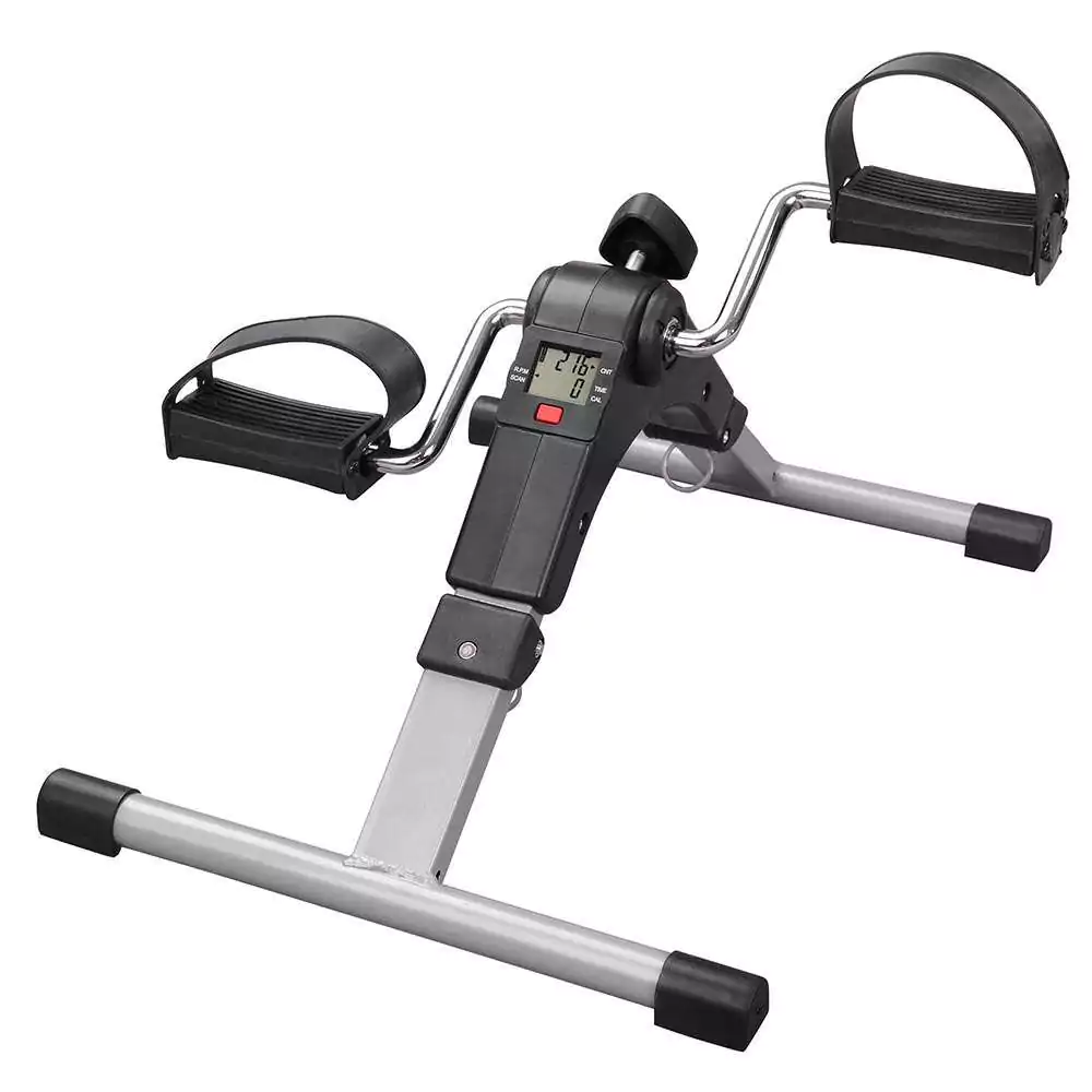Mini Exercise Bike lets you exercise your arms and legs. In addition to pedaling, you can also engage your arms, shoulders, and upper back. The one-button computer shows the following workout data: calories, total rpm, rpm or time. You can rotate the pedal forward and backwards, engaging different muscle groups. The direction of pedaling does not affect the training data.
